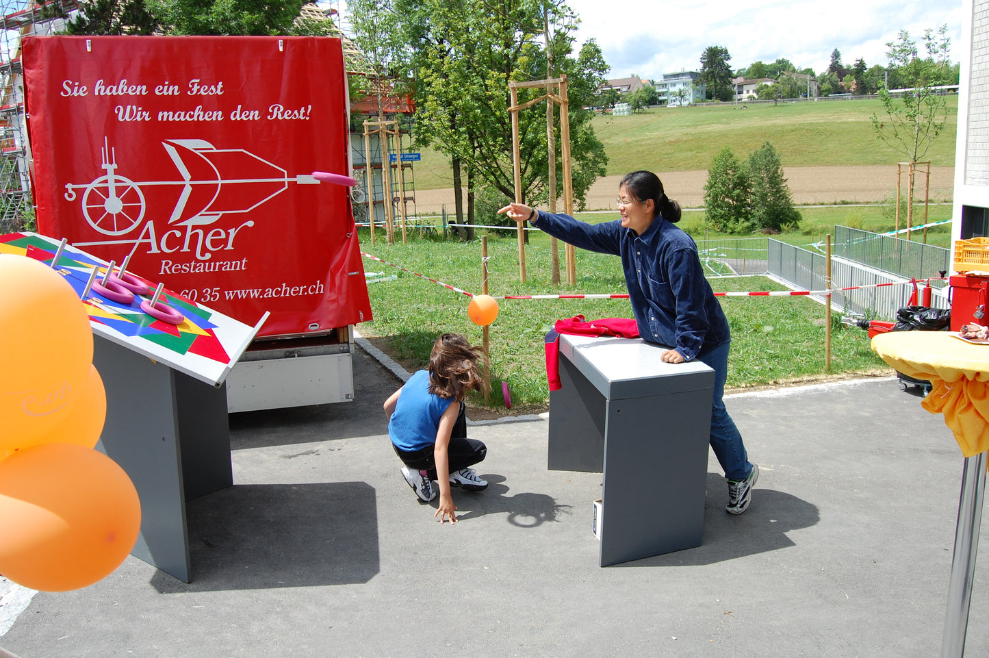 Ein gutes Auge, Geschicklichkeit und ein wenig Glück sind die Voraussetzungen für dieses Spiel. Die Grundfläche ist etwas geneigt und hat in der Mitte 5 Metallstäbe mit unterschiedlichen Wertungen. Das Spiel ist in 4 verschiedenen Sujets erhältlich.