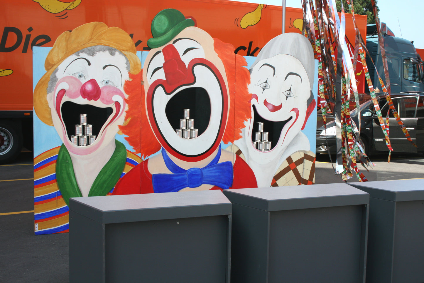 Bei diversen Spielen einsetzbar (z.B. Büchsenwerfen). Das Spielpult hat eine trapezförmige Grundfläche. Es sind drei Stück vorhanden.