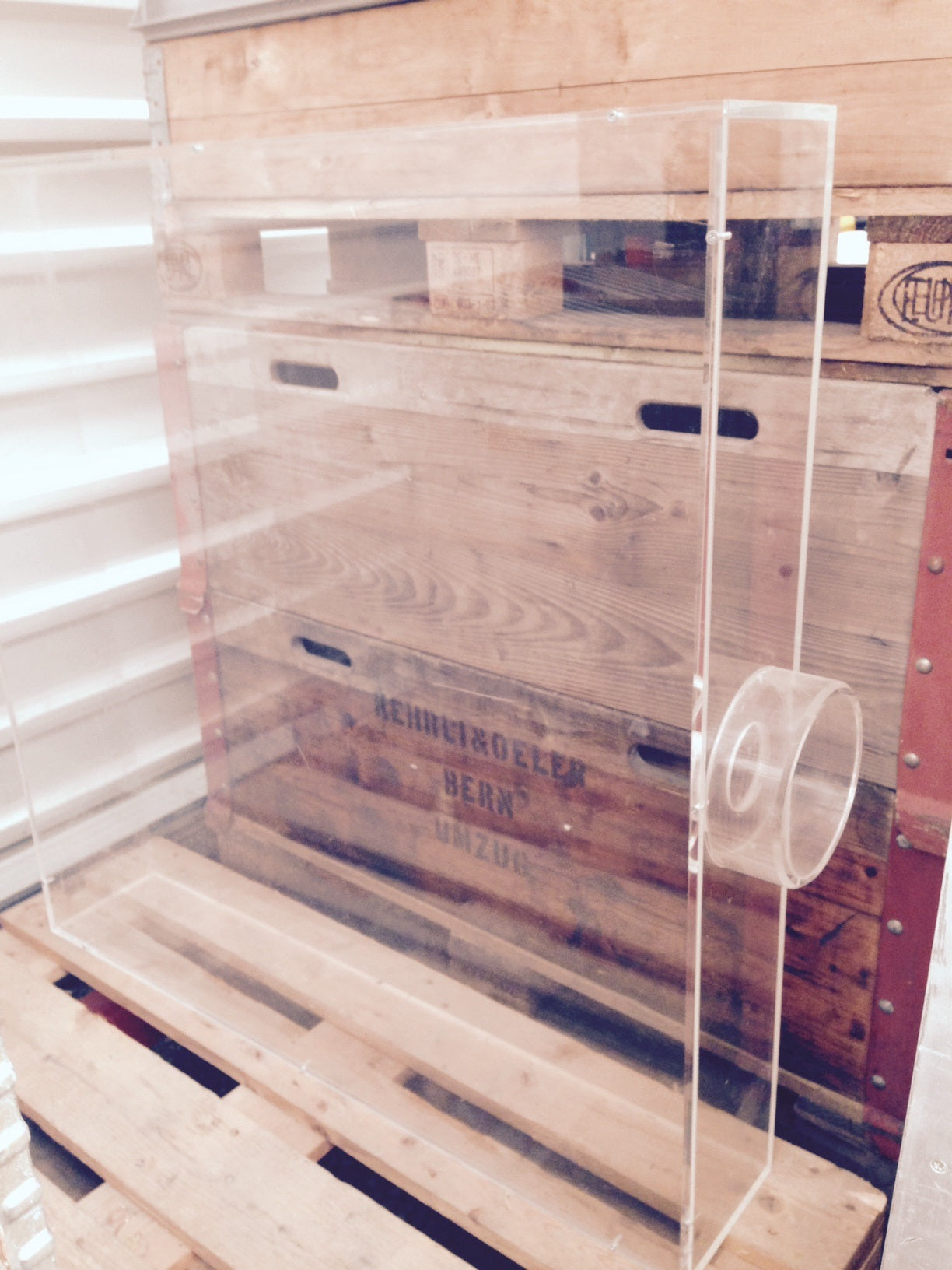 EIne ungewöhnliche Urne aus Plexiglas.