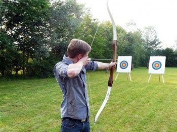 Haben Sie schon einmal mit einem richtigen Pfeilbogen geschossen? Gerne zeigen wir Ihnen wie es geht. Sieht beim Robin Hood einfacher aus als es in Wirklichkeit ist. Eignet sich für kleinere Gruppen von Erwachsenen. Es braucht eine freie Fläche von ca. 10 x 15 m, wenn möglich im Freien, sollte vorhanden sein. Set mit zwei Bogen und Zielscheiben. Unsere Betreuung ist notwendig.