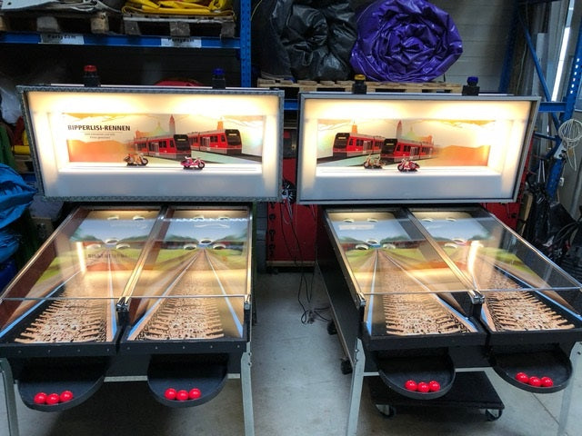 Wer seine Kugeln am besten in den Löchern platzieren kann, dessen Zug erreicht als erstes das Ziel. Vier Spieler spielen gegeneinander im Kampf gegen die Genauigkeit des Kugelstossen. Das Spiel kann optisch Ihren Wünschen angepasst werden.