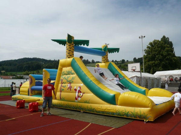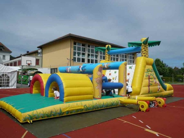 Aufgrund seiner Grösse ist dieser Hindernisparcours ein riesiger Blickfang und bietet den Kindern jede Menge Spass um sich auszutoben. Dieses Modul kann aber auch als Wettkampf-Bahn an einem Sportevent eingesetzt werden.