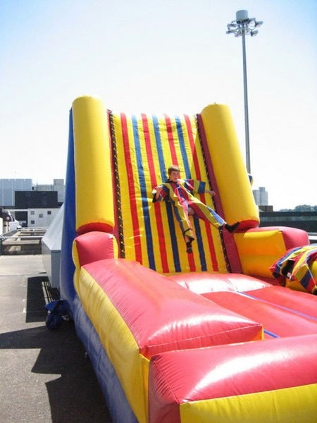 Unsere Klettwand ist auch als Fly Trap oder Spider Web bekannt. Wer springt höher oder bleibt lustiger an der Klettwand hängen? Der Phantasie sind keine Grenzen gesetzt. Lustige Attraktion die ganz schön "auf die Puste" gehen kann.