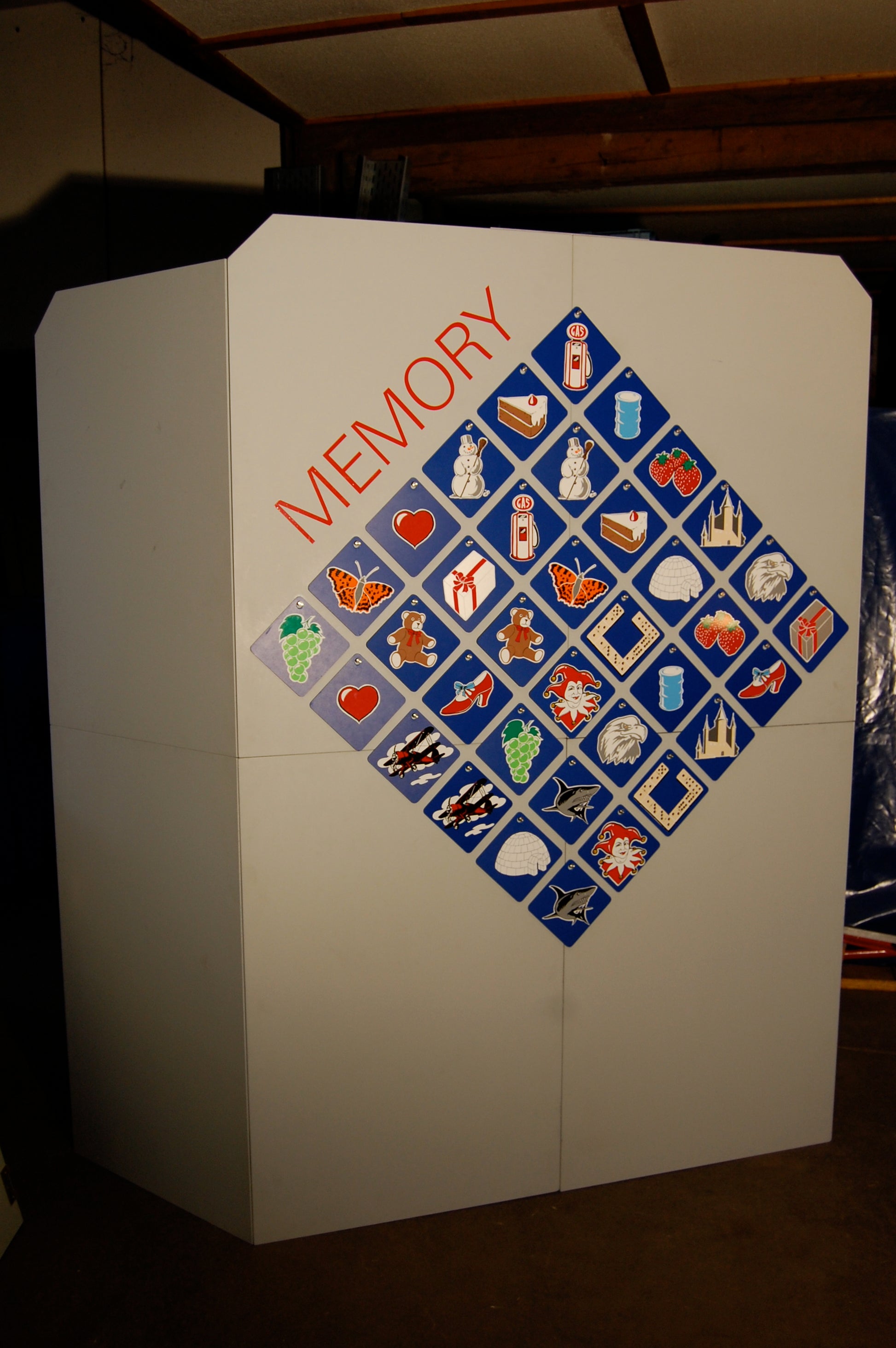 Ein Memory im Grossformat mit 36 Feldern. Entweder wird solange gespielt, bis die beiden Joker-Felder oder bis alle Paare aufgedeckt werden.
